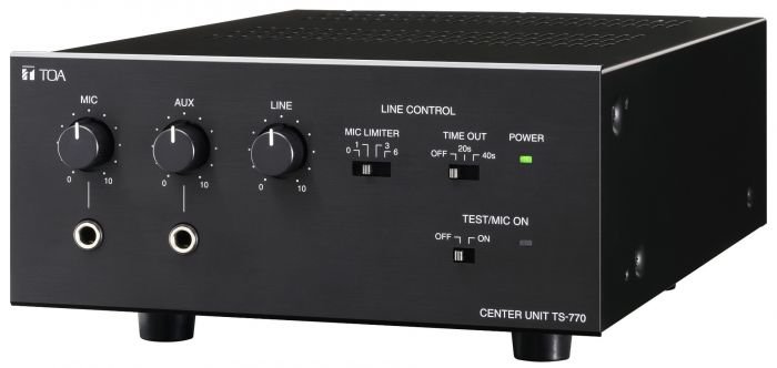 The TS-770 is a Central unit for TOA Conference system, of which compact design makes it easy to install and store. Use of its line connection terminals permits connections to the conference units of TS-771, TS-772, and TS-775, making up a conference system. Up to 3 Central units can be connected.